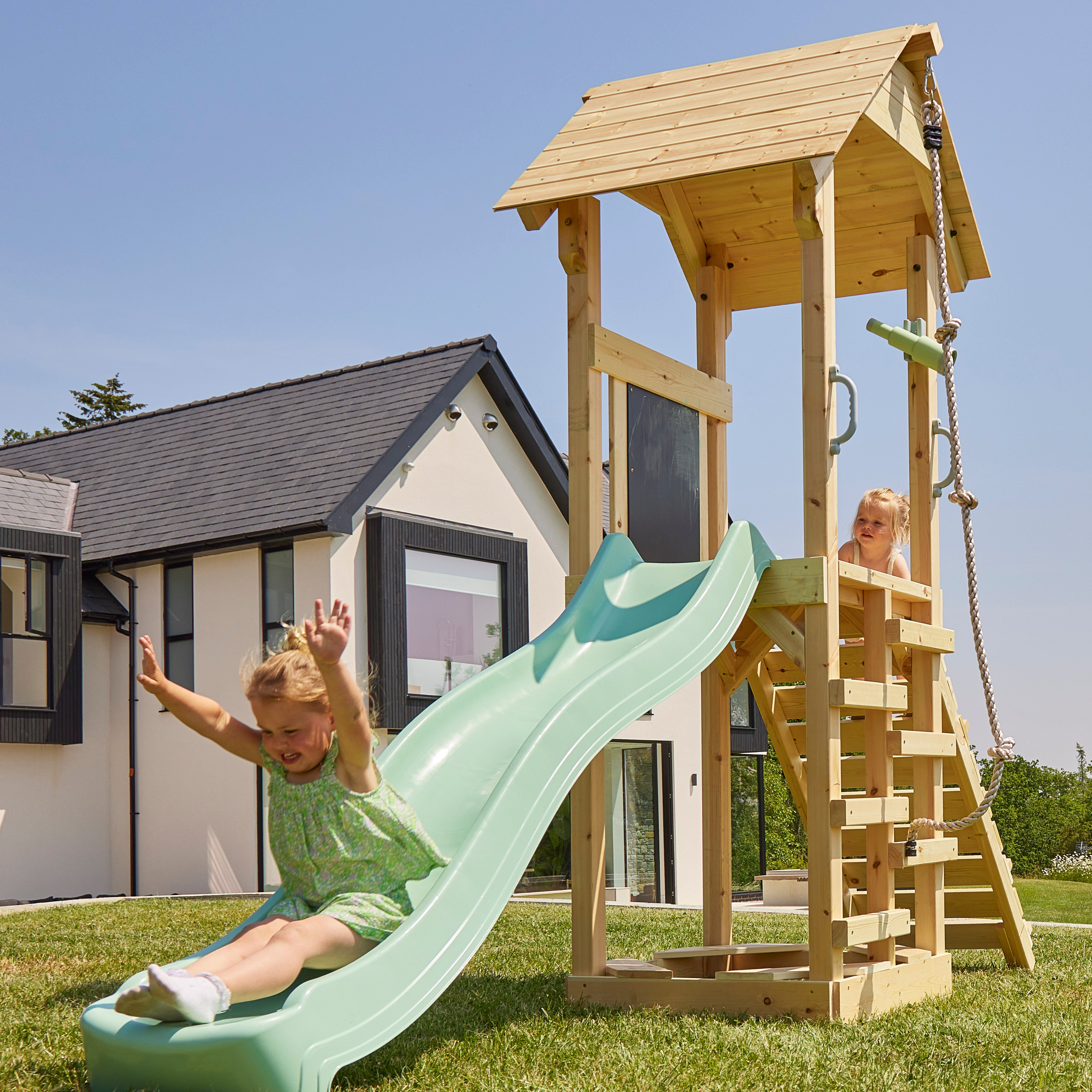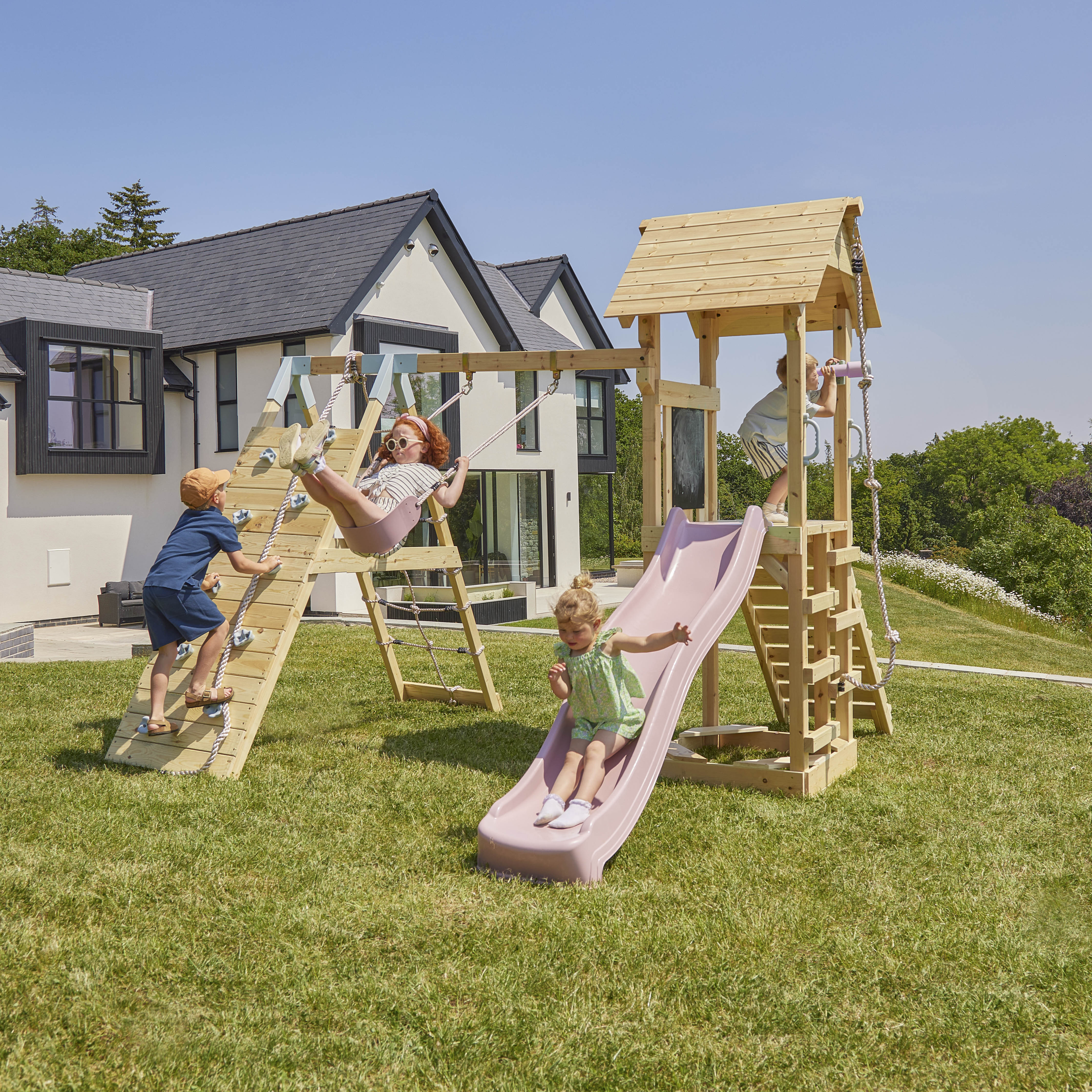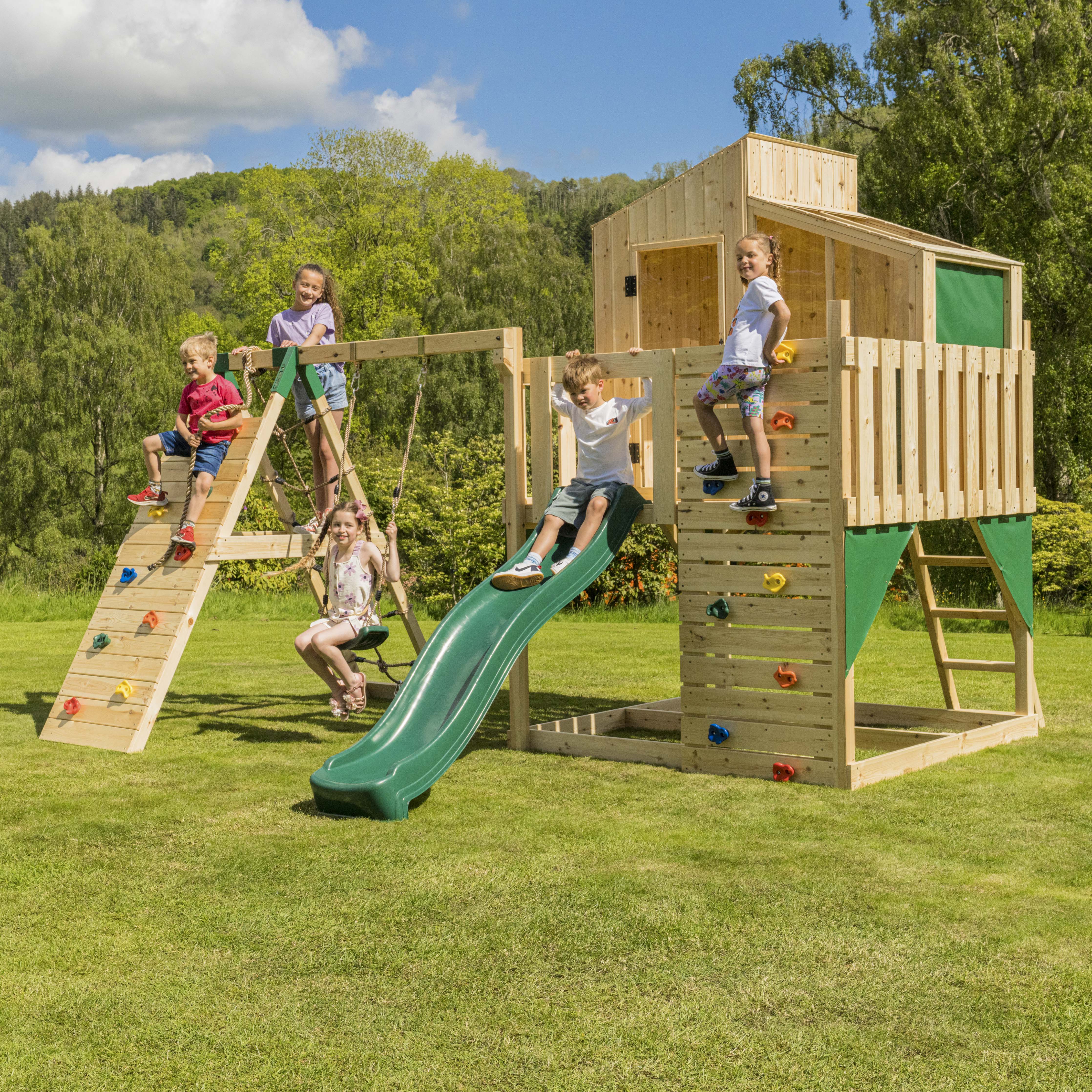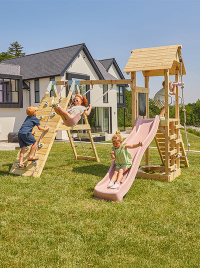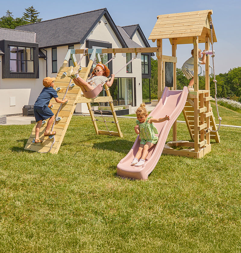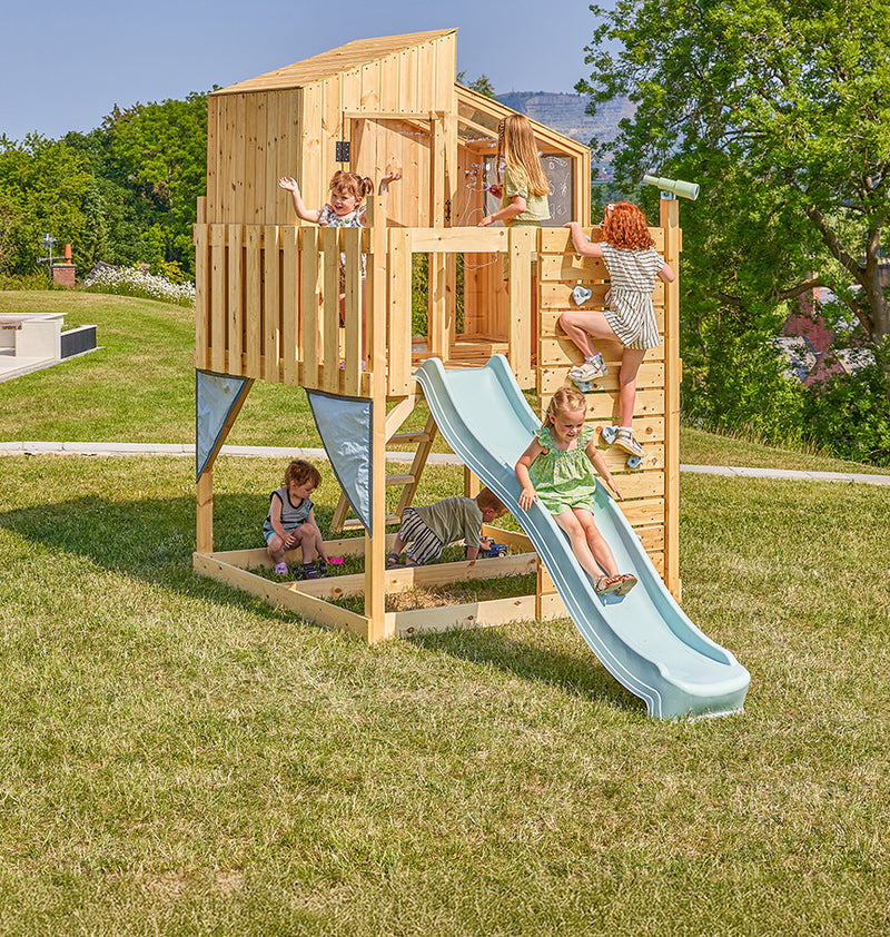 Kinderen moeten zoveel mogelijk buiten zijn. Tijdens het spelen in de tuin kunnen ze hun natuurlijke bewegingsdrang bevredigen, prikkels verminderen en zich onderdompelen in hun eigen fantasiewerelden. Maak van je tuin een speelparadijs voor je kroost met OutdoorToys. Onze buitenspeeltoestellen zijn speciaal ontwikkeld voor buitengebruik en zijn gemaakt van hoogwaardig hout en daardoor bijzonder stabiel en duurzaam. Wij bieden u individuele glijbanen of Schommels, maar ook een selectie van speeltoestellen die verschillende speelaanbiedingen combineren.