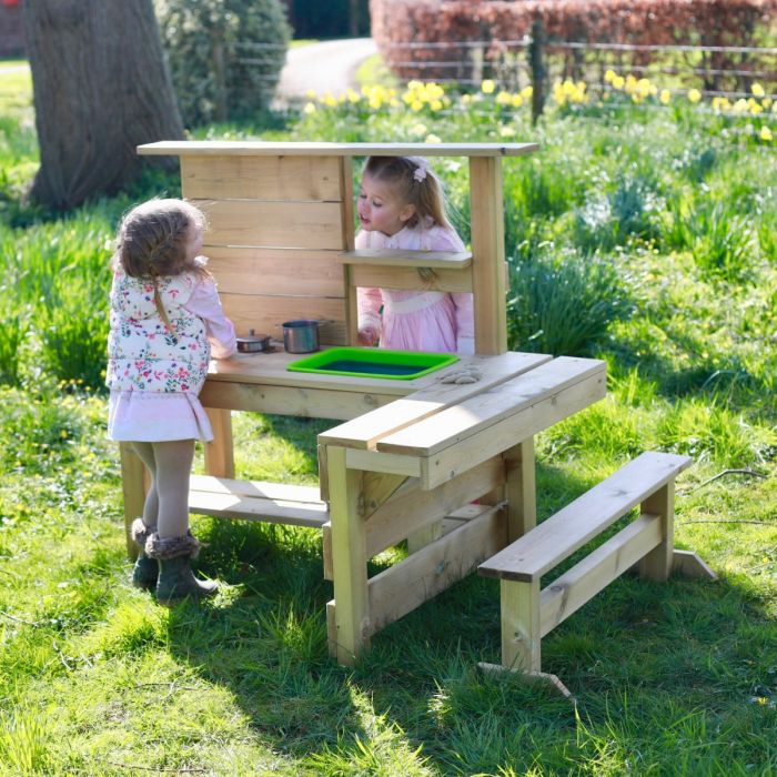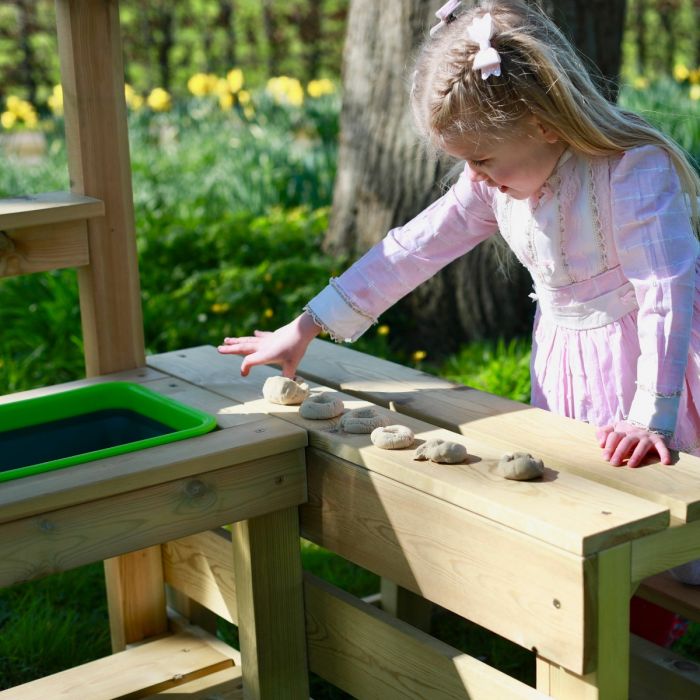 Of het nu een modderkeuken met bankje is en een gootsteen heeft, of dat de toekomstige bakkers zich creatief uitleven met een zandbak: ontdek bij OutdoorToys de mogelijkheden die een modderkeuken biedt!