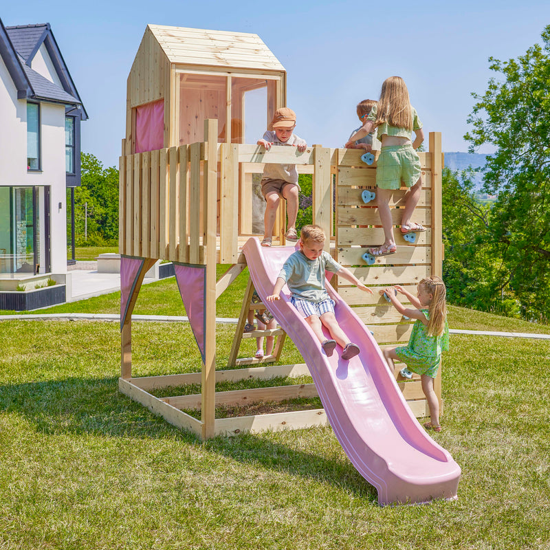 De combinatie van een speeltoestel met klimwand biedt een veelvoud aan speelmogelijkheden en prikkelt de fantasie van je kinderen. Naast klimmen kunnen ze het speeltoestel gebruiken als uitkijkpunt, denkbeeldige avonturen beleven of spannende spelletjes bedenken met vrienden. De hoogwaardige houten constructie zorgt ervoor dat het speeltoestel bestand is tegen alle weersomstandigheden en een duurzame speelomgeving biedt. Door de vele gebruiksmogelijkheden wordt het speeltoestel een centraal element in je tuin, dat creativiteit, beweging en speelplezier verenigt.