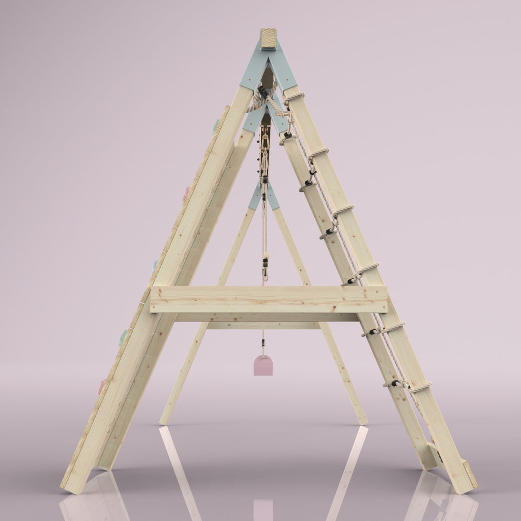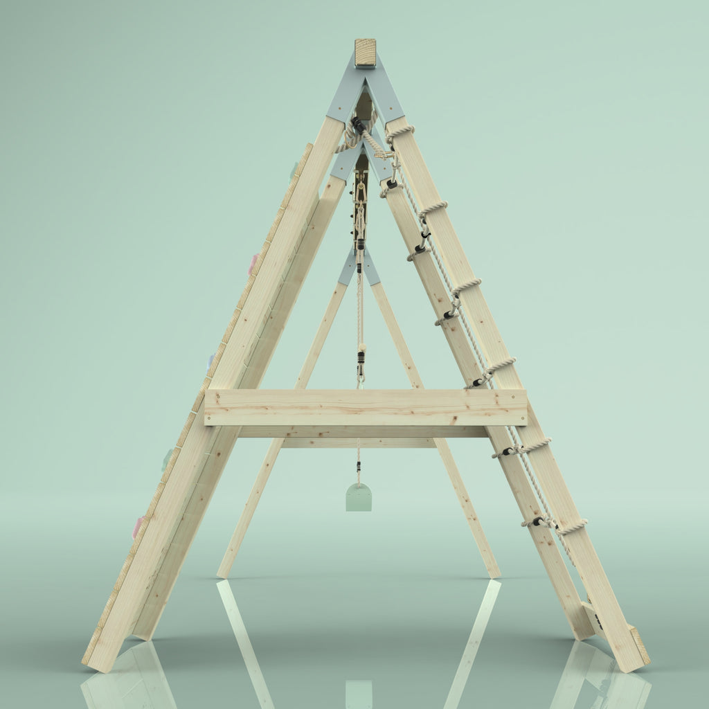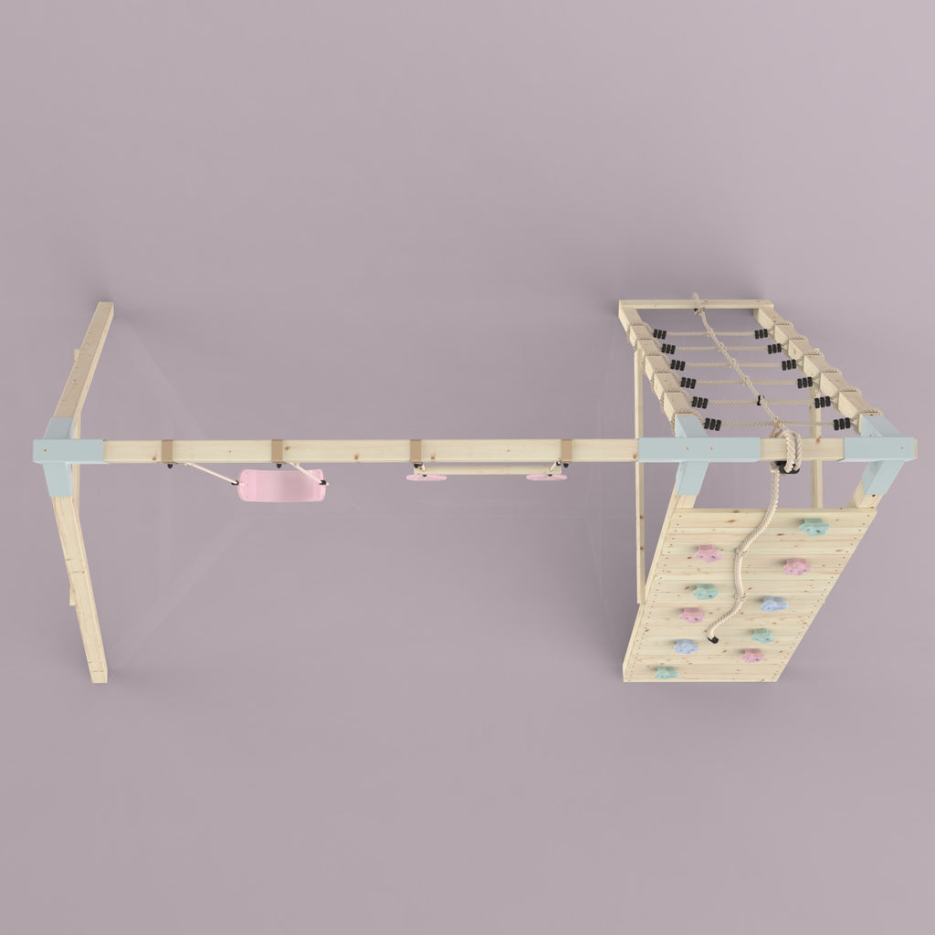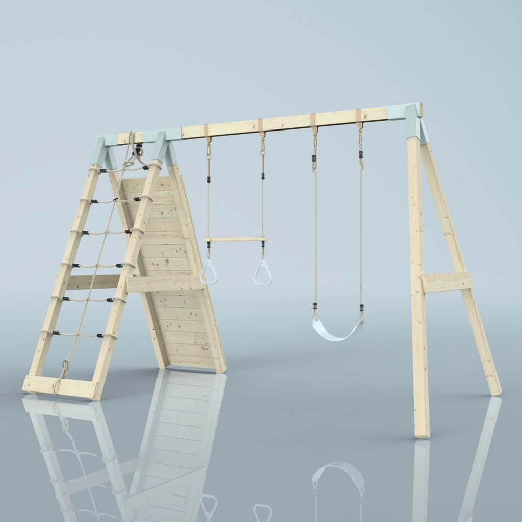Naast de schommel en de trapezestok kunnen je kinderen zich ook uren uitleven op de klimwand en klimnetten.