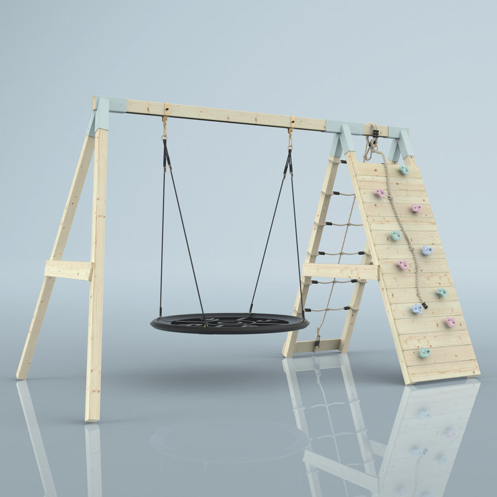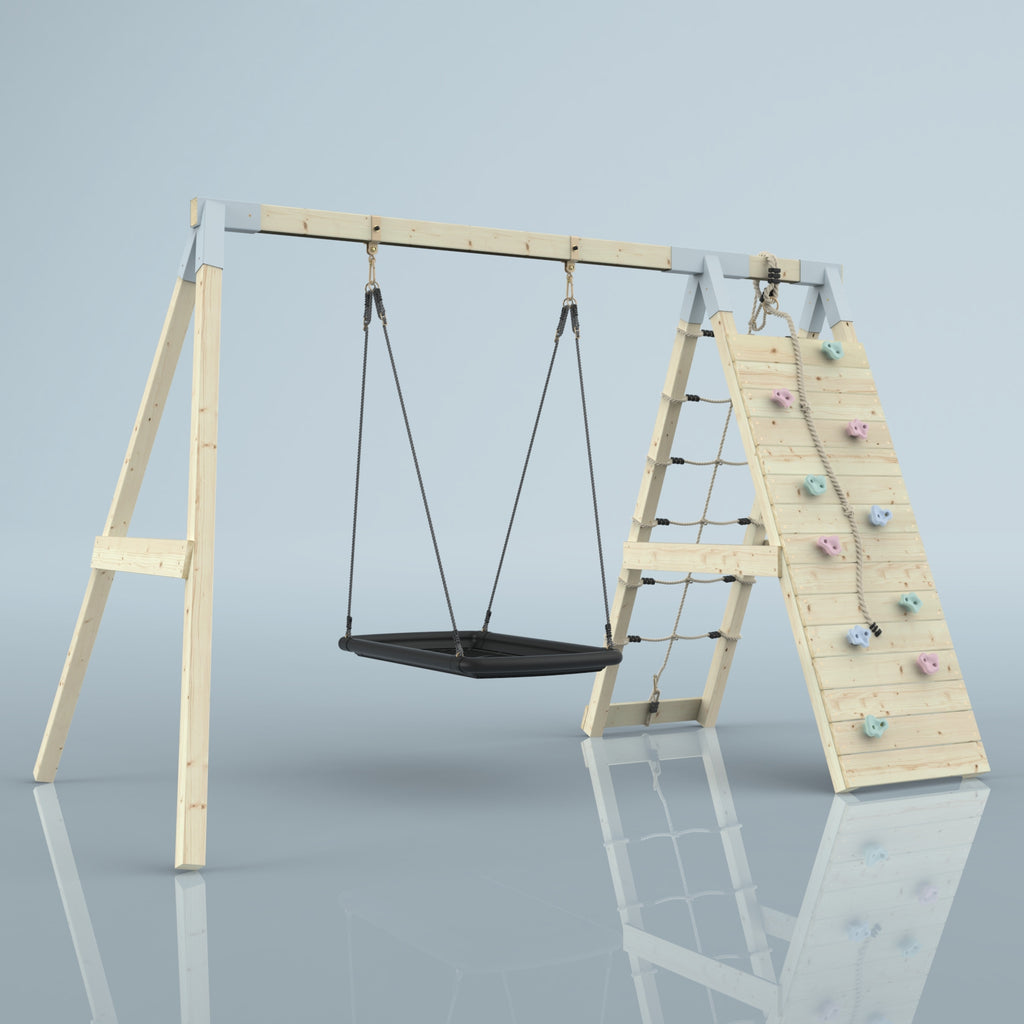 Het Polarplay Kakadu klimrek is een prachtige houten schommelset met een grote nestschommel en een klimwand die de perfecte aanvulling is op je tuin. Kinderen kunnen hun gedachten de vrije loop laten terwijl ze naar de wolken kijken op de nestschommel.